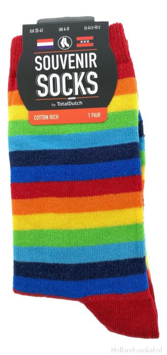 Brightly colored rainbow socks. These amazing socks have a design of stripes in all colors of the rainbow.
