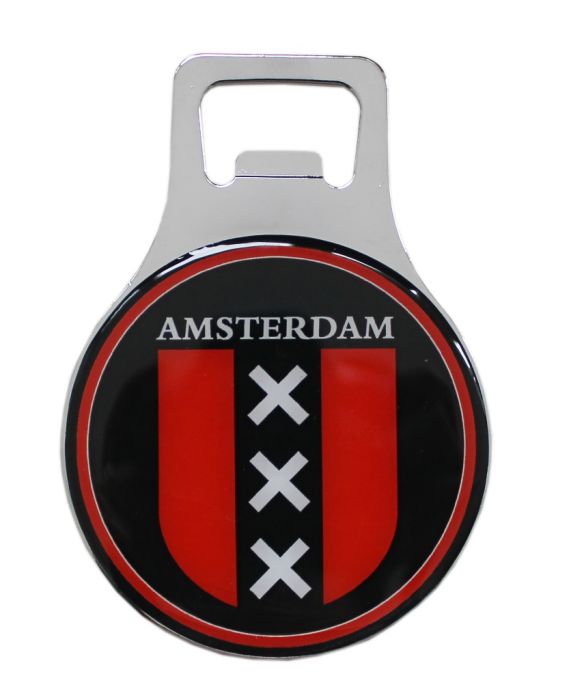 Good quality bottleopener/magnet Amsterdam, made of steel/epoxy. Put it at the refrigerator and there is always an opener at hand!