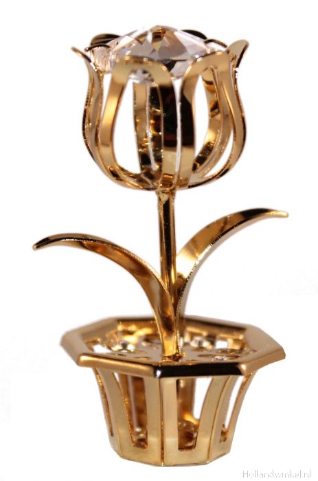 Single tulip, with clear Swarovski strass crystal. With magnifyer the Swarovski mark is visible.