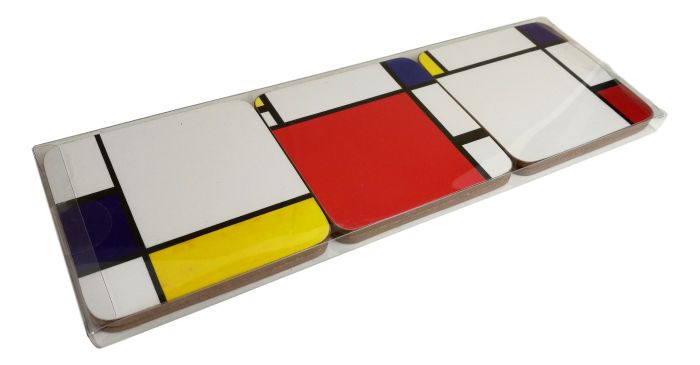 Set of 6 coasters with pictures of works by Piet Mondriaan.