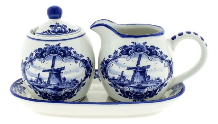 Cream and sugarset Delftblue Mill on a very nice dish.
