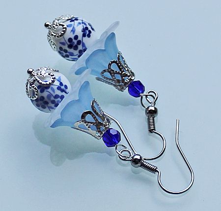Set delftblue earrings with several different beadcaps Length is 25mm, the hooks are allergy free.