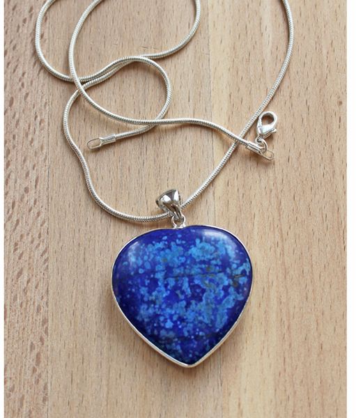 Necklace Lapis Lazuli with heart charm 37x35x8mm, natural, undyed