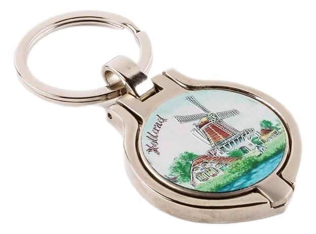 Sturdy metal keychain with a Dutch windmill landscape on the outside.