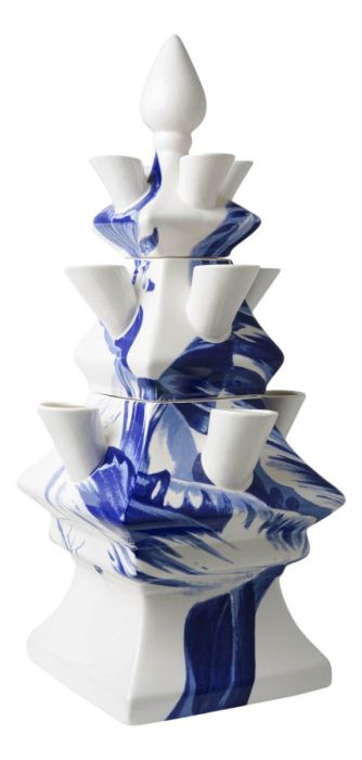 Deze mooie hoge tulpenvaas is versierd met een stijlvolle tekening van een tulp. De vaas bestaat uit drie aparte keramieken delen die in elkaar gezet worden. Een onderkant, middenstuk en bovenkant.