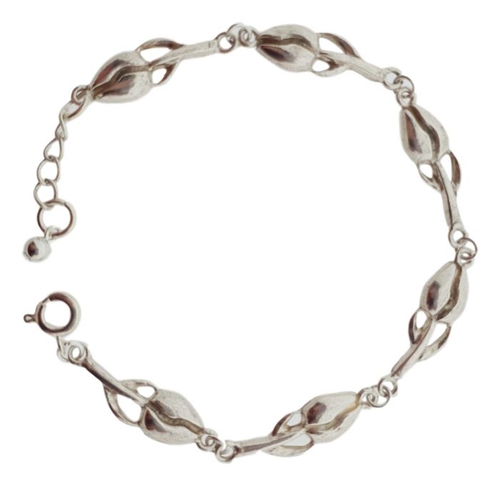 Armbandje gemaakt van verzilverde tulpen.Polsmaat ± 18c m