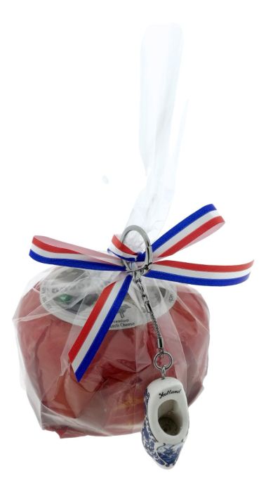 Deze kleine Nederlandse gouda polderkaas van 380 gram is lekker puur. Geen kruiden, alleen maar kaas. Versierd met een passende delfts blauw sleutelhanger klompje en ingepakt in een plastic zakje is het een kleurig en smakelijk geschenk.