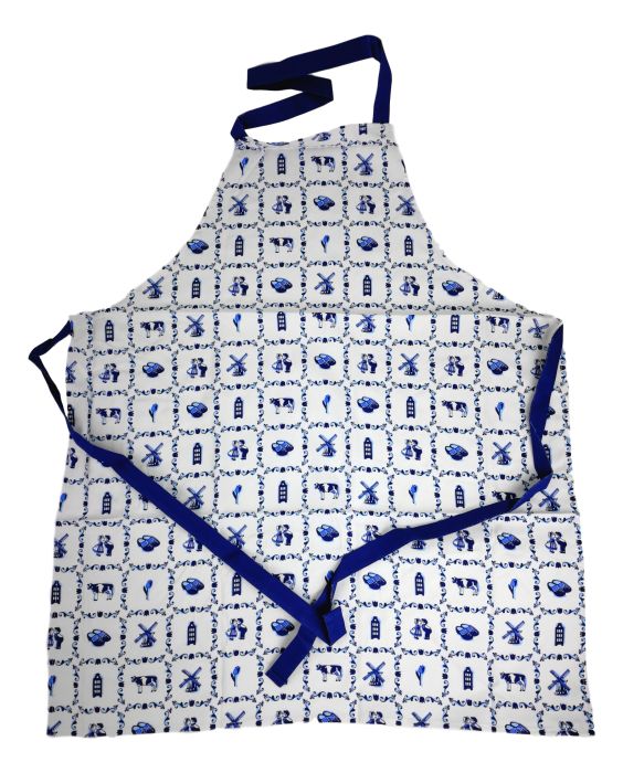 (Barbecue) schort versierd met tegels. Goede kwaliteit textiel met Hollandse symbolen in tegelvorm.