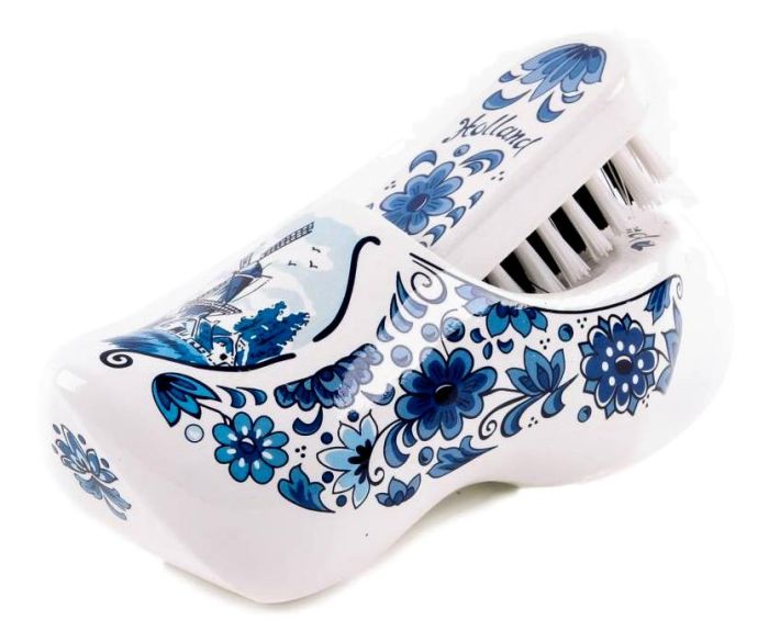 Delftsblauw beschilderde houten klomp van 16 cm met een handschuier/borstel.