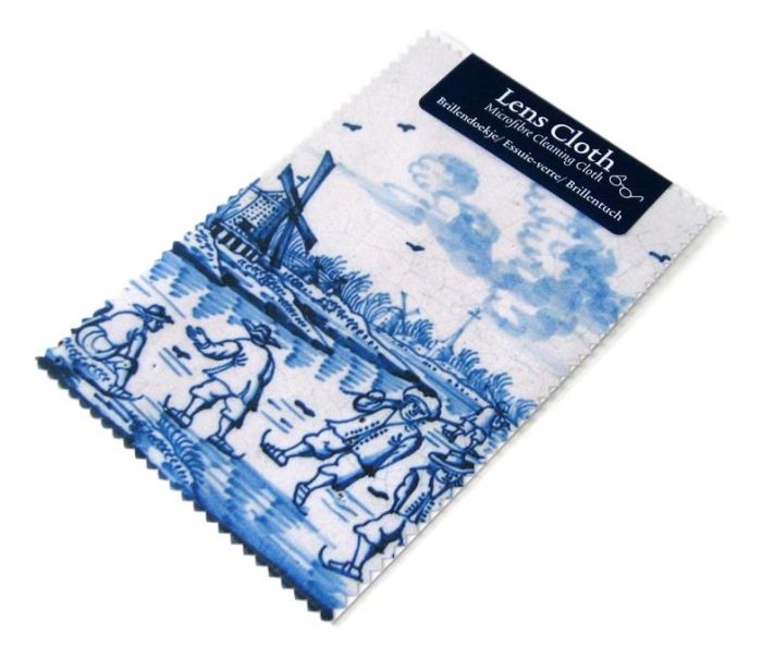 Brillendoekje verpakt in plastic daarop een molenlandschap met Hollandse schaatsers.