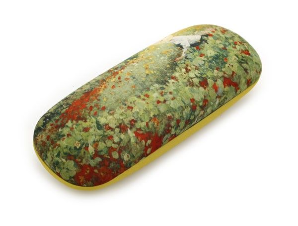 Stevige brillenkoker met een afbeelding van de tuin door Jacobus van Looy (1855-1930), geschilderd in 1893. Dit werk hangt in het Teylers Museum in Haarlem. De brillenkoker heeft als afmetingen: 16cm x 16cm x 4cm