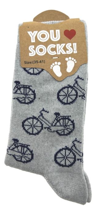 Damessokken "Fietsen Blauw" Grijs (35-41)