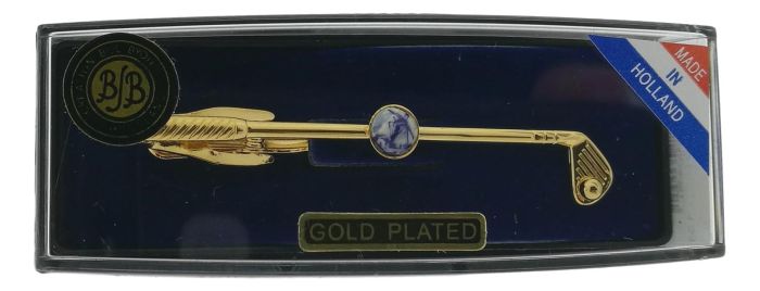 Vergulde dasklem in de vorm van een golfstick versierd met een kleine ronde windmolen in het midden.
