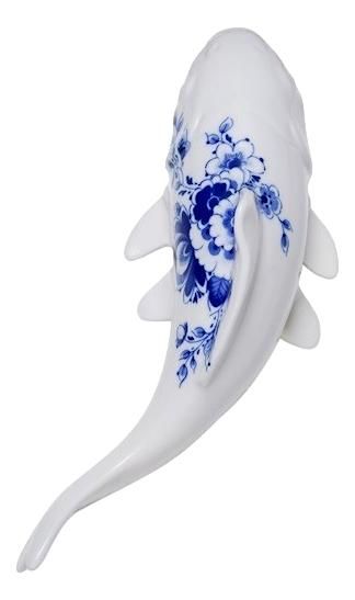 Een sierlijke porseleinwitte koi karper van keramiek om aan de muur te hangen. Deze sierlijke vissen uit oost Azie, zijn een echt statussymbool en worden gehouden om mee te pronken.