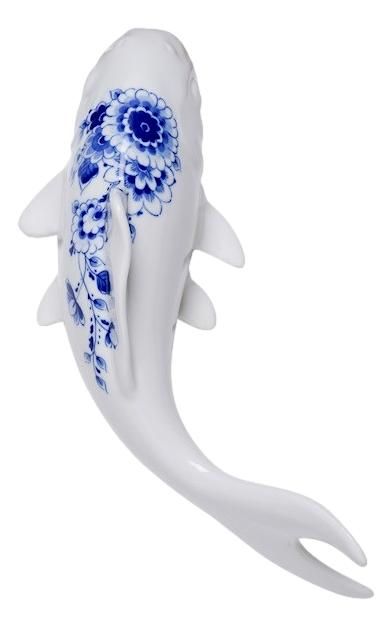 Een sierlijke porseleinwitte koi karper van keramiek om aan de muur te hangen. Deze sierlijke vissen uit oost Azie, zijn een echt statussymbool en worden gehouden om mee te pronken.