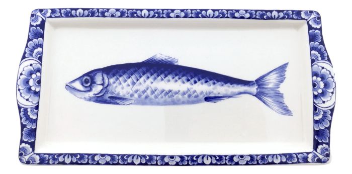 Mooie haringschaal, versierd met een delfts blauwe haring. Bijvoorbeeld voor het serveren van een stukje vis.