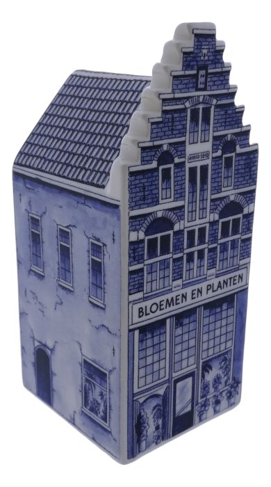 Keramiek huisje in Delfts blauw naar Singel 450 in Amsterdam.