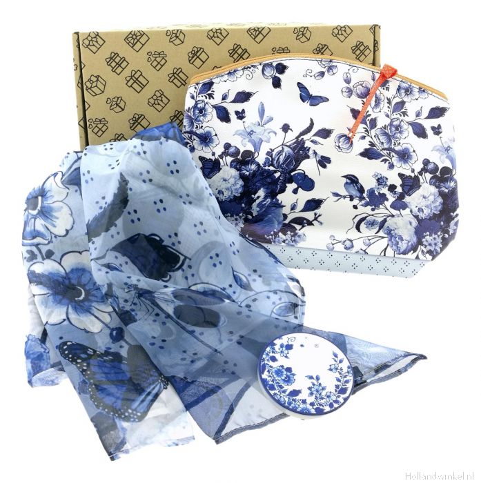 Delfts Blauwe Sjaal & Toilettas cadeauset