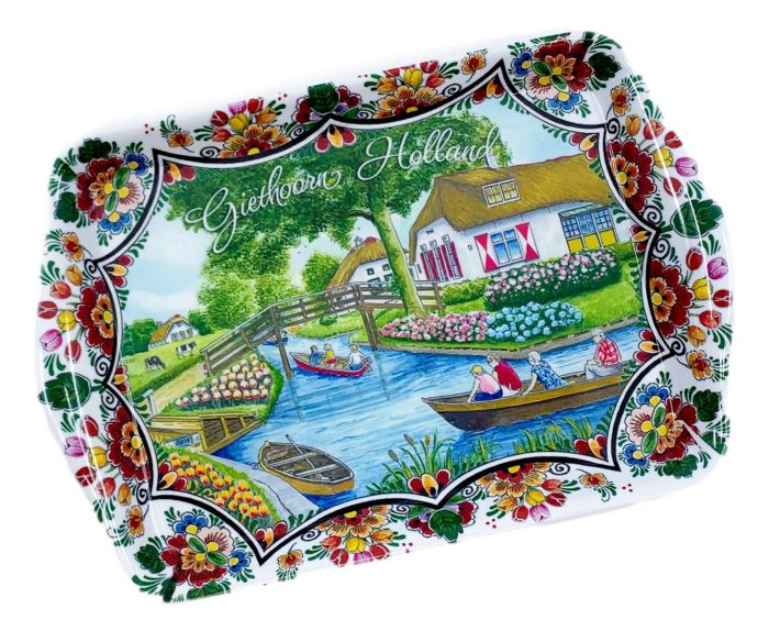 Ontdek de charme van Giethoorn terwijl je geniet van het praktische gemak van dit Dienblad (21 x 14 cm)! Dit prachtig vormgegeven dienblad is niet zomaar een handig accessoire, maar ook een artistiek statement dat de serene schoonheid van Giethoorn naar je interieur brengt.