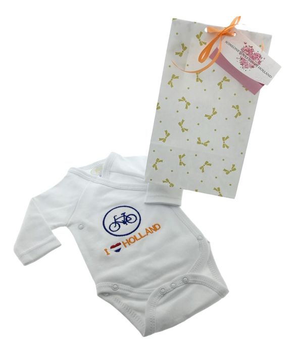 Er is ook een leuk kaartje met de tekst "Someone loves you in Holland". Een mooi geschenk voor een nieuwe telg aan de familie boom, of voor de pasgeboren baby van een relatie in een ver land!