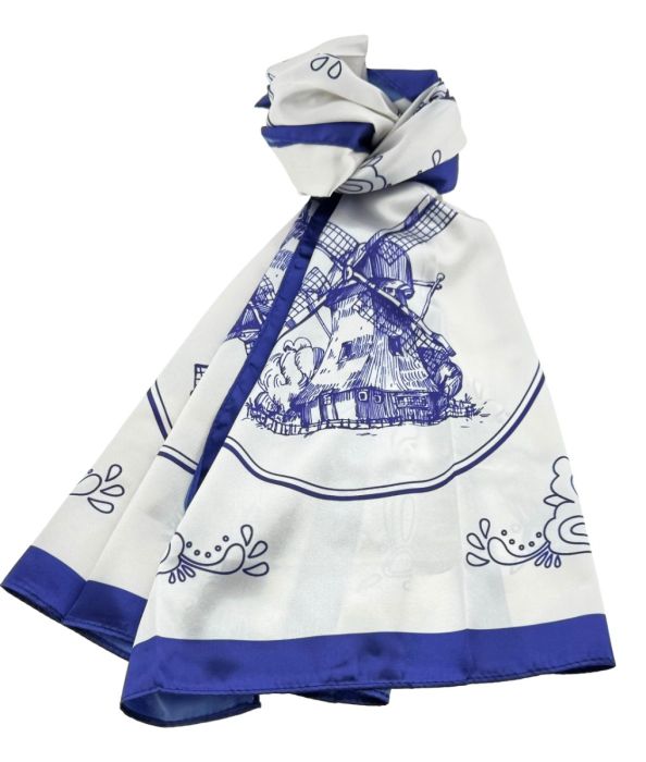 Mooie grote glimmende sjaal versierd met Nederlandse windmolens met satijn gevoel.