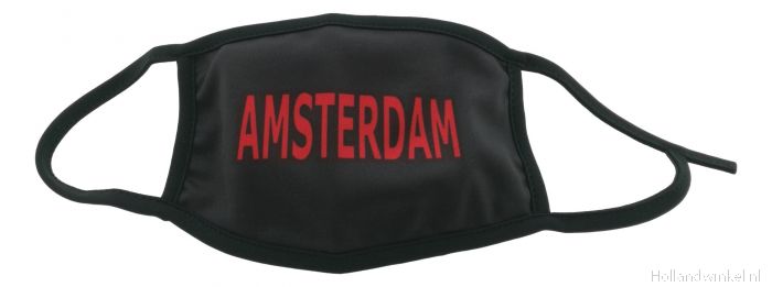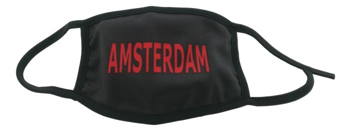 Mooi zwart mondkapje met de tekst "Amsterdam"