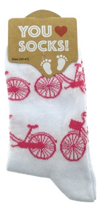 Dames Sokken "Wit met Roze Fietsen" 35-41