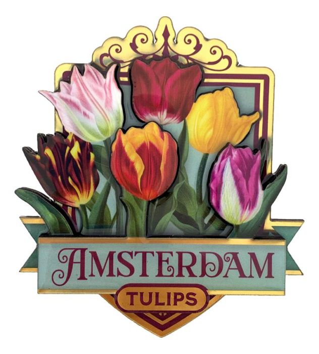 Deze grote, glanzend gecoate magneet is versierd met felgekleurde tulpen en de tekst "Amsterdam". Met afmetingen van 9 cm bij 10 cm is het de perfecte decoratie voor jouw koelkast of andere magnetische oppervlakken.