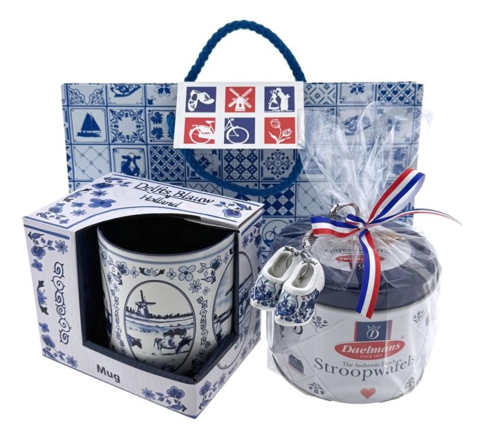Delfts Blauw Souvenirset met Hollandse Stroopwafels