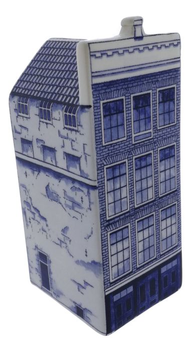 Keramiek huisje in Delfts blauw dat Prinsengracht 263-267 laat zien.