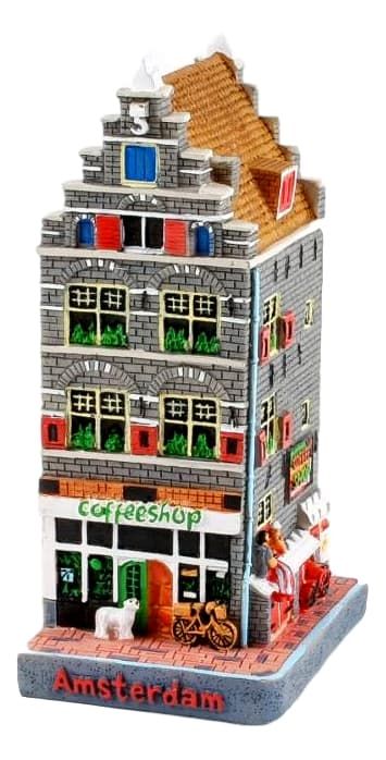 In deze versie van het miniatuurhuisje is de voorgevel voorzien van een coffeeshop.