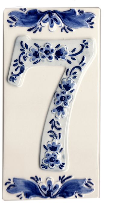 Tegel met delfts blauw huisnummer 7. De maat van de tegel is 15x7,5cm.