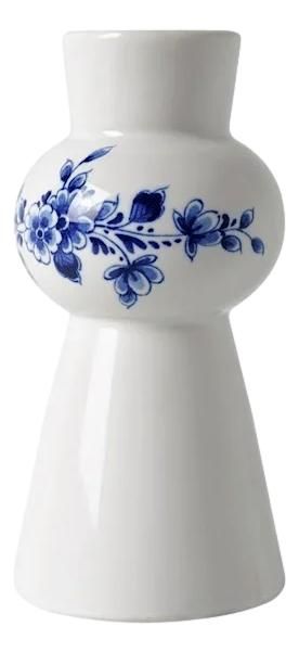 Deze in het oog springende kandelaar combineert hedendaags ontwerp met klassieke Delfts blauwe decoratieve elementen. De toelopende top van de kandelaar is ontworpen om een standaard maat dinerkaars te passen. Niet alleen is deze kandelaar een prachtig opzichzelfstaand decoratiestuk, maar hij komt ook volledig tot zijn recht op een mooi gedekte dinertafel.