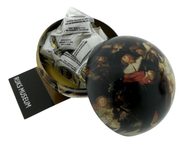 De metalen bal is versierd met het werk "De Nachtwacht" uit 1642 door Rembrandt van Rijn. Rembrandts beroemdste en grootste doek werd gemaakt voor de Amsterdamse schutterij, de burgerwacht van de stad. Zijn werk is tegenwoordig onderdeel van de Rijksmuseum collectie.