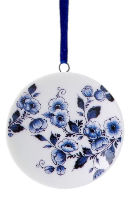 Dit prachtige keramische kerstornament is een must-have voor elke liefhebber van Delfts blauw. De Delfts blauwe bloesem loopt van rand tot rand over het bordje heen, waardoor het een sfeervolle toevoeging is aan je kerstboom.