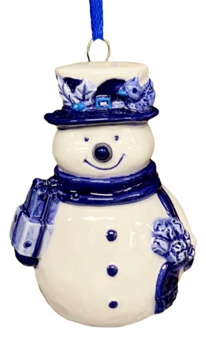 Kerstornament Sneeuwman Delftsblauw 8cm