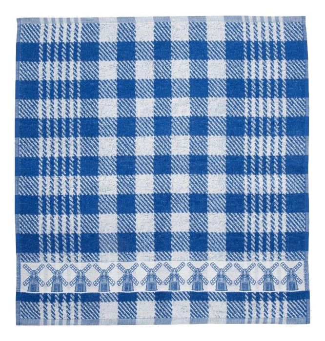 Mooie stevige blauw geblokte keukenhanddoek Molen Blauw.