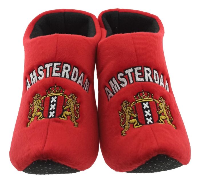Deze Amsterdam klompsloffen zijn fel rood, stijlvol en voorzien van het wapen van de stad Amsterdam. Met deze bijna donzig zachte sloffen heb je geen koude voeten meer op een winteravond, en ze zijn rood.