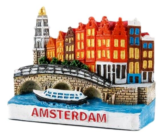 Het witte gebouw op deze magneet is Cafe Papeneiland, een typisch bruin café, in een gebouw uit 1642, op de hoek van de Prinsengracht en de Brouwersgracht in Amsterdam.