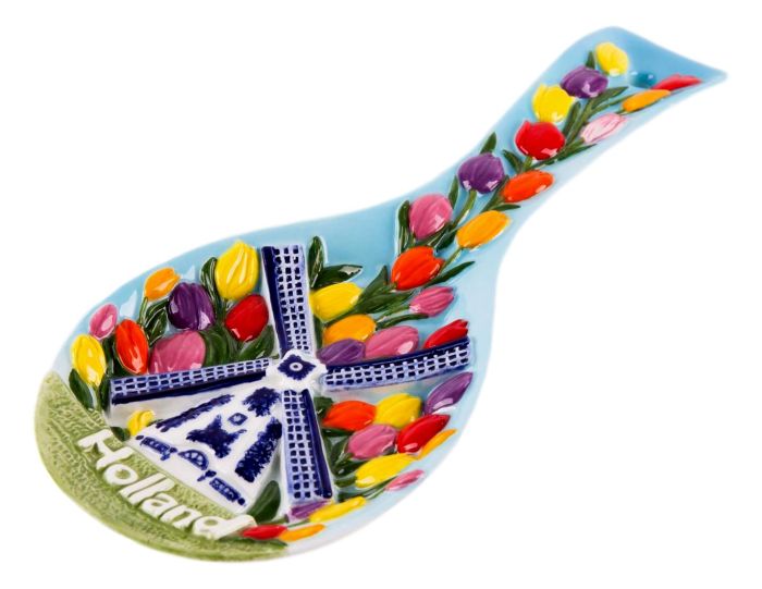 Gemaakt van keramiek, en touristisch versierd is dit een mooie, maar ook functionele lepelhouder met Hollands thema.