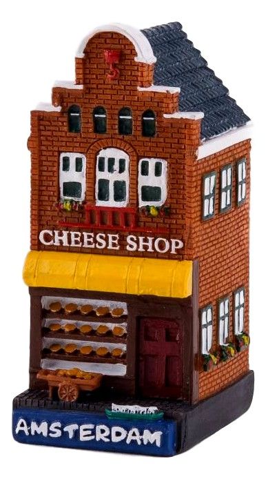 Klein Amsterdamse grachtenpandje versierd met een kaas winkel.