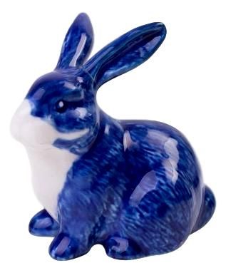 Dit konijntje is gemaakt van aardewerk en in het blauw gekleurd.