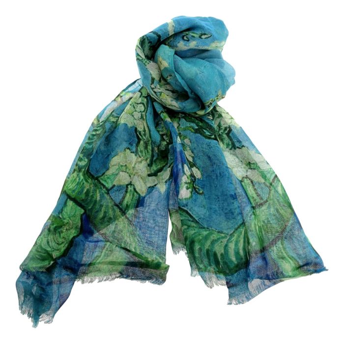 Mooie grote zachte sjaal versierd met de amandelbloesems van Vincent van Gogh.