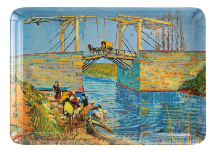 Het schilderij "Bridge at Arles" van Van Gogh is in hoge resolutie op dit dienblad gedrukt, waardoor de levendige kleuren en ingewikkelde details van het originele kunstwerk worden vastgelegd. De opvallende afbeelding zal zeker indruk maken op kunstliefhebbers en iedereen die de schoonheid van Van Goghs werk waardeert.