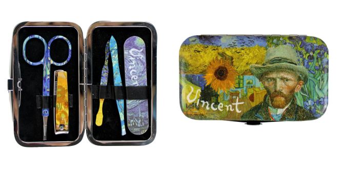 Goed gevuld manicure setje versierd met een compilatie van bekende werken van Vincent van Gogh.