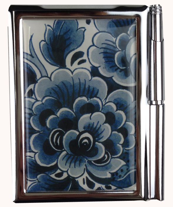 Bijzonder mooi uitgevoerd notitieblokje met pen in een metalen kaft. Geleverd in kadodoosje. Eerst de pen eruit halen, daarna gaat het blokje open!