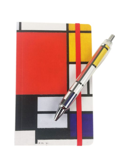 Notitieboek met het beroemde werk van Mondriaan uit 1921 met een bijpassende pen.