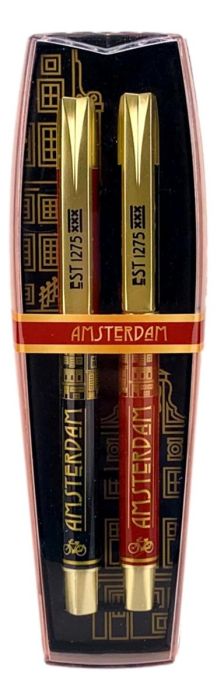 Deze set van 2 pennen is versierd een Art deco patroon en de tekst "Amsterdam".