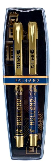 Deze set van 2 pennen is versierd een Art deco patroon en de tekst "Holland".