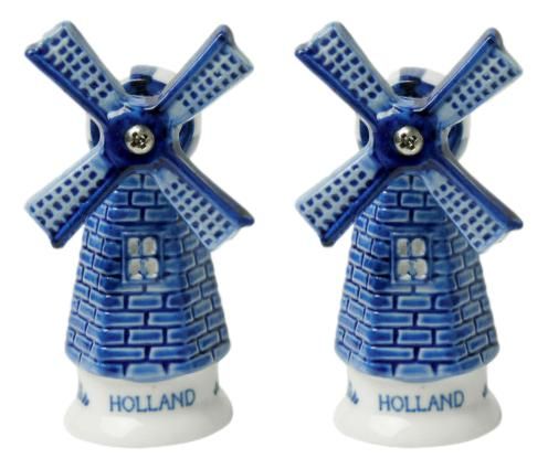Klassiek peper & zoutstel bestaande uit een tweetal molens met de tekst "Holland". De wieken van de molen kunnen draaien. Het setje wordt geleverd in een doosje.